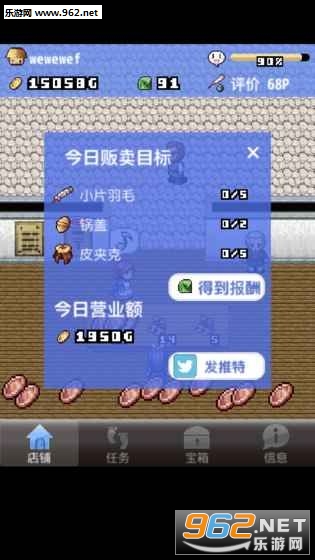 3、复古的像素画风,内存很小,但是经营的内容却非常的丰富,商品类别比较多,店铺的经营也很丰富;