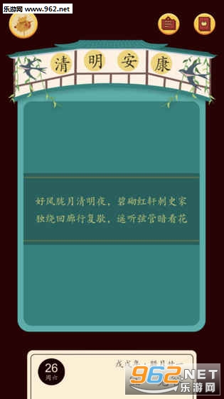 《佳期团圆安卓最新版》是一款具有浓厚东方特色的文字游戏,游戏以中华民族的传统节日以及美德为背景题材进行打造,融合了独一无二的艺术美感,简单的游戏过程,让玩家们在这个团圆的日子里更加能感受到一份节日的气息,感兴趣的亲赶紧下载吧。