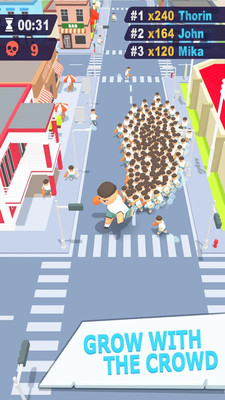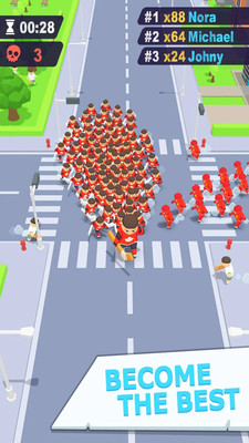 玩法节奏非常快的一款io竞技游戏,玩家在游戏中选择自己喜欢的角色皮肤和其他人进行对战,控制更多的人群,成为最强大的存在。