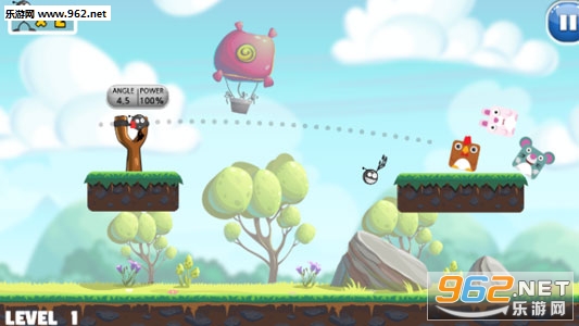《击倒火柴人最新版》是一款有趣的弹弓弹射游戏,游戏的玩法跟《愤怒的小鸟》差不多,你要使用弹弓来发射火柴人炸弹,用炸弹来撞击小动物,使用有限的炸弹将小动物们全部撞下平台就可以闯关成功了。