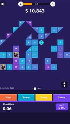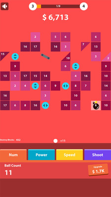 闲置小球爆射是一款休闲益智的小游戏,玩家需要操作小球来消除数字的方块,在一次次的碰撞中折返并且使数字变小,直至数字为0方块就会消除。别看数字很高,当小球多了的时候砖块真的不过看的,而能量球不会消失。多种不同形状的方块来尽情的挑战,关卡多,刷新你的高分,喜欢的玩家不要错过了哦!