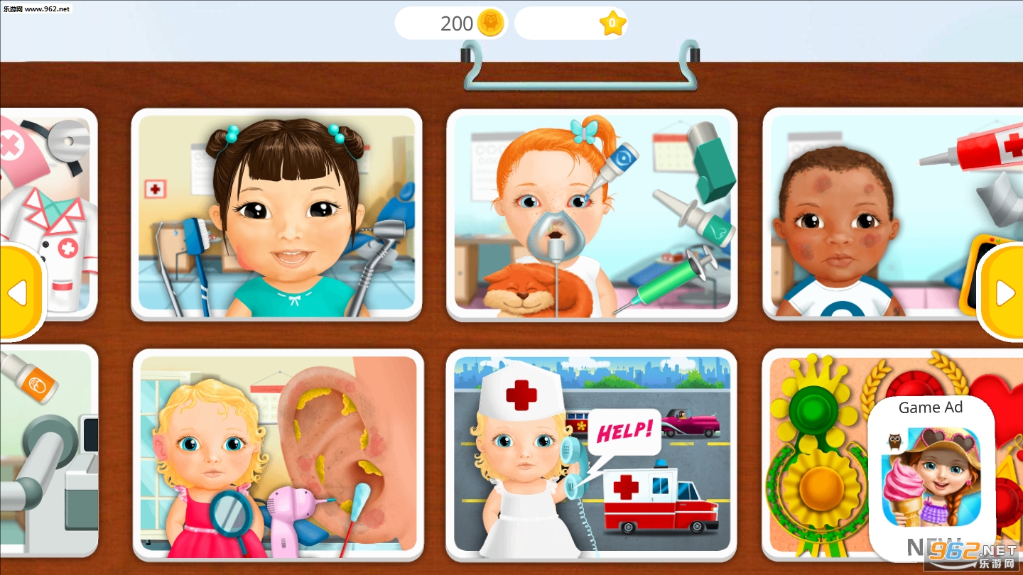 《甜蜜女孩医院2》是一款模拟医生治病的手机游戏。玩家将扮演一名儿童医生,为生病的孩子们治疗。游戏中有非常详尽的提示,每个病人的病症都是不一样的,你可能需要帮助被蜜蜂蛰了的小孩、牙齿有蛀牙的小孩等等,非常有趣!