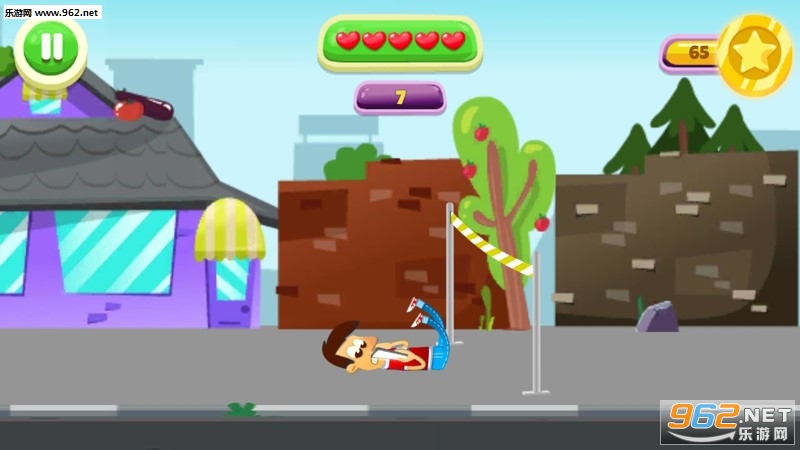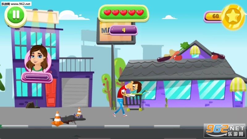3.走在马路上的男子在玩着手机,但是马路上有障碍,需要玩家帮助他跳过去