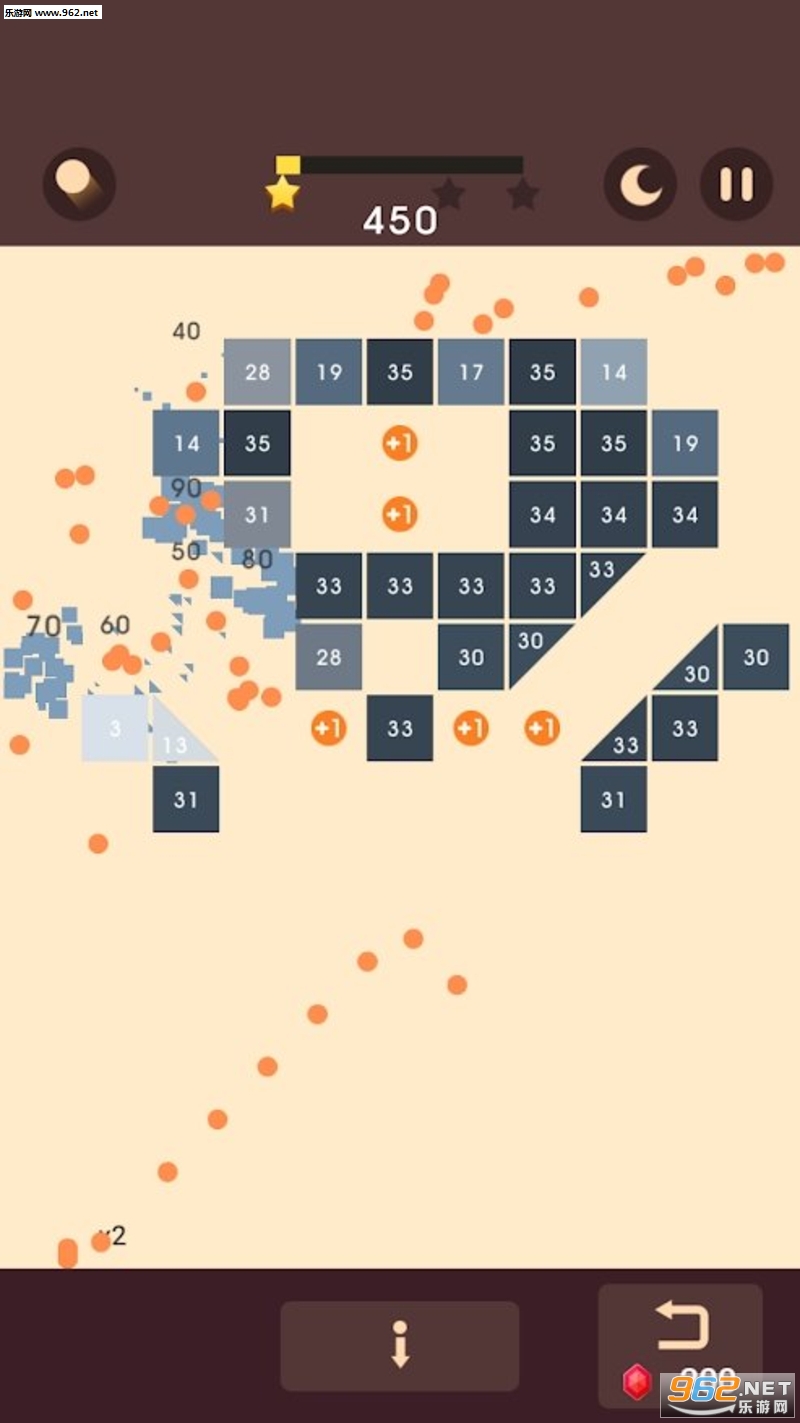 单次击碎越多砖块,分数就越高哦!