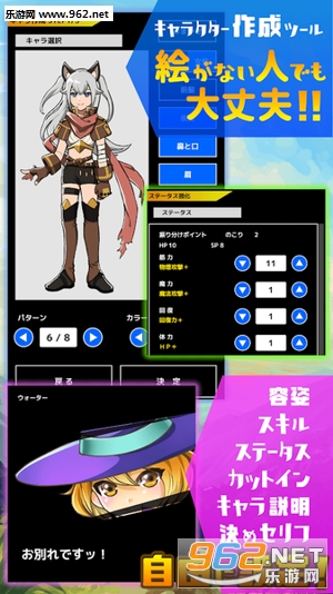 容姿/技能/数据/必杀台词/角色说明都可以自己设定!