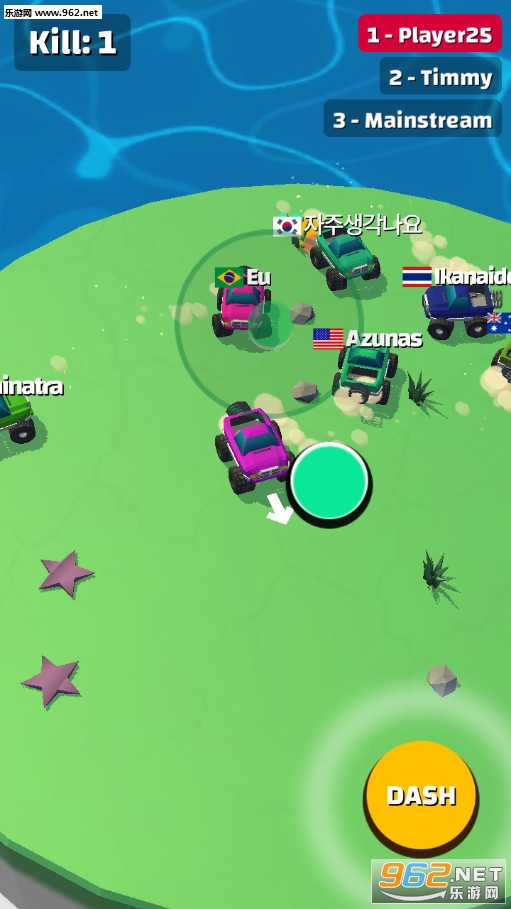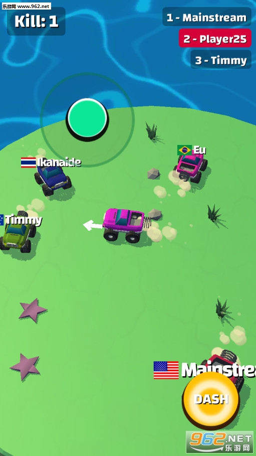 《卡车大作战安卓版》是一款绝对有趣搞笑的io类游戏。游戏是卡通低模风格做的,卡车的种类颜色都还挺多的,玩家可以随意选择,进入竞技场之后,玩家可以看到别的车辆上方的所属国旗和名字ID,当然别人也可看到你的呢。