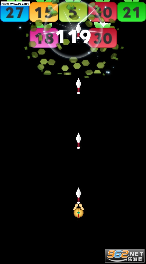 不断的发射飞刀来对前方的水果方块进行打击,当打击与方块上相同的次数时即可成功的将它消除,不断的前进,并升级你的武器.