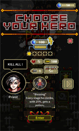 持枪神父是由韩国haru娱乐公司推出了由一人的独立游戏开发公司开发的Roguelike类闯关手游,在很久以前,被神父们消灭的怪物们准备重新反攻人类。为了阻止怪物反攻,神父和他的同伴们重新踏上作战之旅。