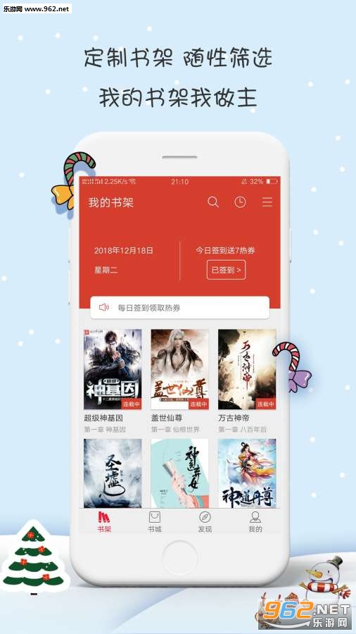 2.自定义书架:易操作的书籍管理功能,方便读者添加、删除、编辑,一键QQ、分享,实时追更最新章节;