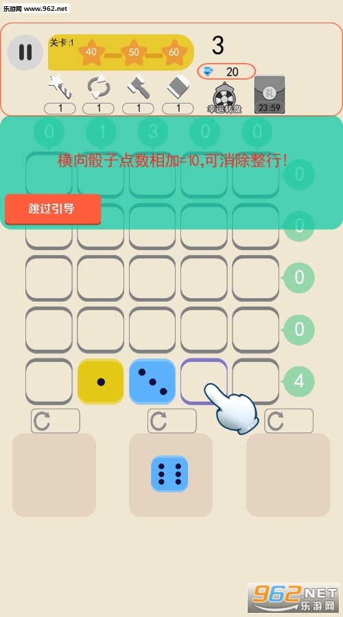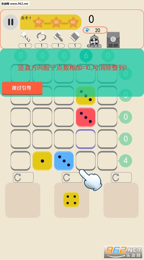 智力数字拼图,当行或列值等于10的时候,清除行或列。