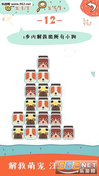 可爱的狗狗被困在了瓶子里,而你只能在有限的步数内解救所有的狗狗。