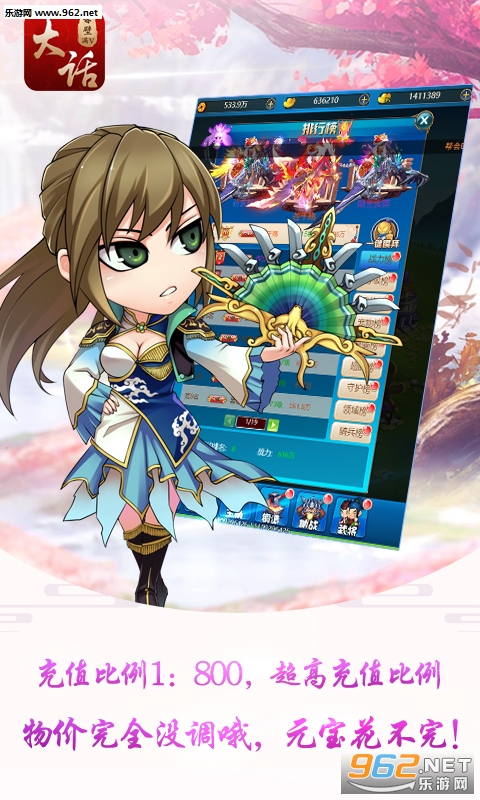 3. 充值比例1:800,超高充值比例,物价完全没调哦,元宝花不完!