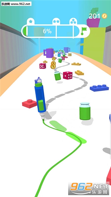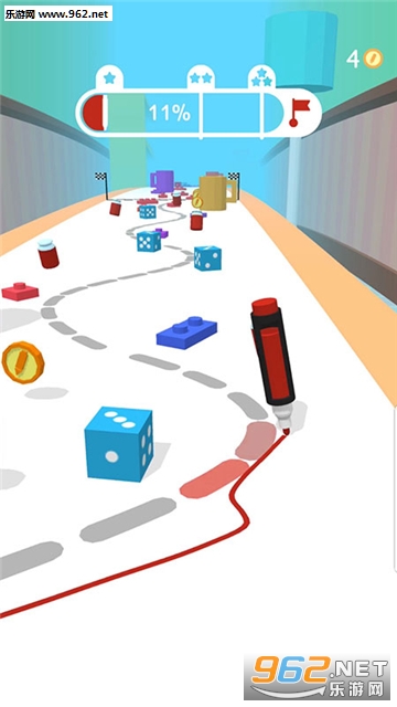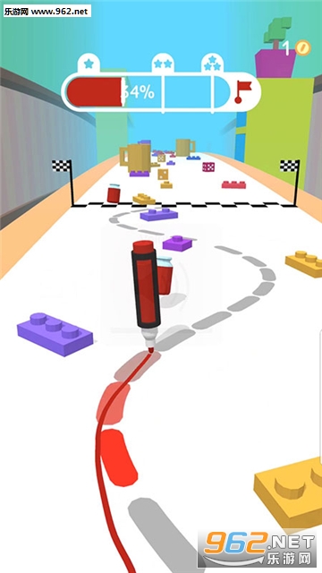 1、玩家左右滑动来操作铅笔,在规定的线路上画线行驶;