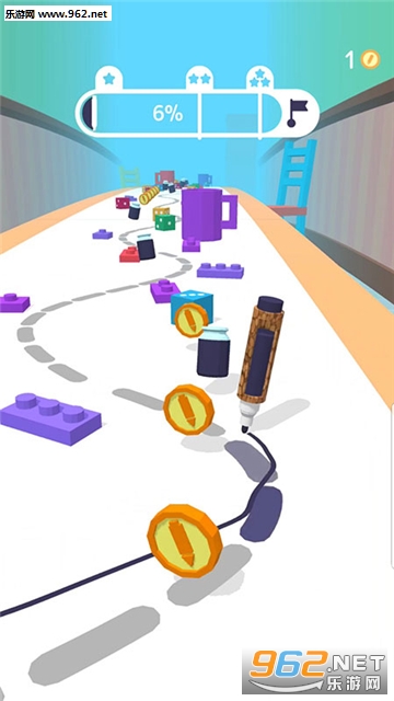 玩家将操控铅笔在不同场景跑酷,收集金币和颜料,通过合理的规划路线,获得各关卡的所有星星!