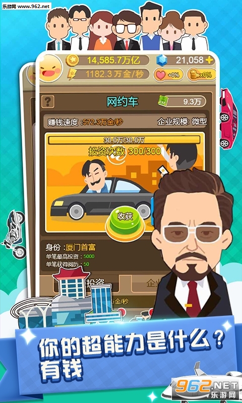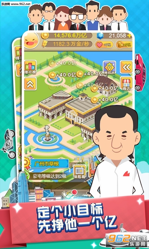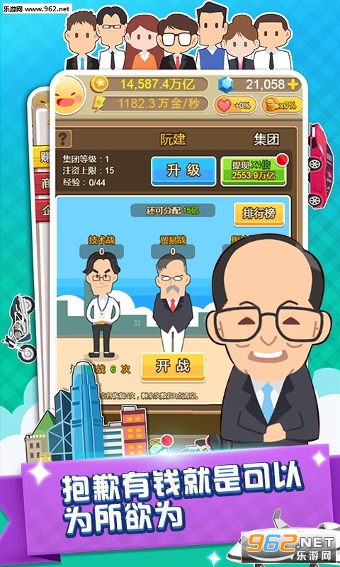 一款经商题材的模拟经营类游戏,轻松的点击放置玩法,玩家将以总裁的身份出现,见证一个大公司的发展之路,感受上流人士的生活,还有时尚名媛和你搞暧昧关系,喜欢的玩家不要错过哦。