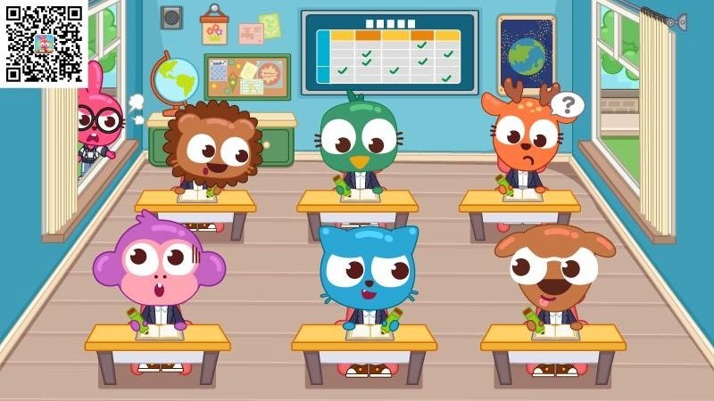 学习时间!坐在课桌前认真学习有趣的知识!试着在黑板上解答算术题!观看投影仪播放的奇妙动物世界!还有神奇的实验室,带上护目镜做实验!看看有什么不一样的反应!打开储物柜,认领自己的格子!