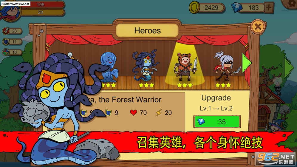 《俺来当英雄》是一款卡通风格的冒险类RPG手游。玩家所在的村子被从天而降的巨龙毁于一旦,你决定去游走天下,召集各路勇士挑战巨龙! 你可以自由选择角色,前往各个场景的迷宫进行探险,每局游戏的场景都是随机变化的哦!