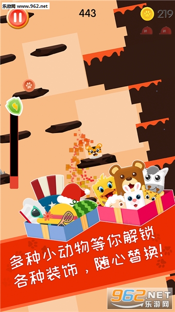控制你的小动物,在台阶上快乐地跳跃,躲避各种机关障碍,穿过不同的场景,努力达到前所未有的高度!