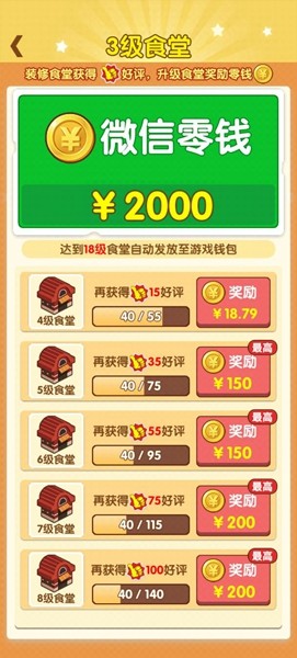 1.创新玩法:是一款结合经营模拟和抢红包的手机游戏,让玩家在经营自己的食堂的同时还能获得丰厚的红包奖励。
