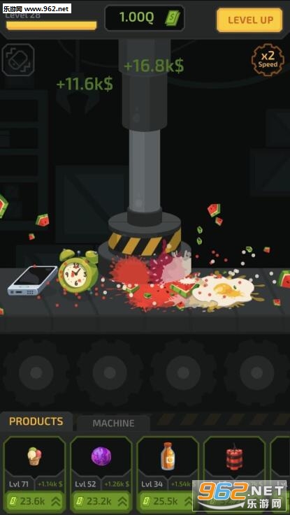 这是一款全新打造的解压休闲游戏。该游戏玩法很简单,玩家控制液压机压榨各种水果,将它们统统碾碎,榨出新鲜的果汁,充分发泄心中的情绪,很适合放松解压的游戏。