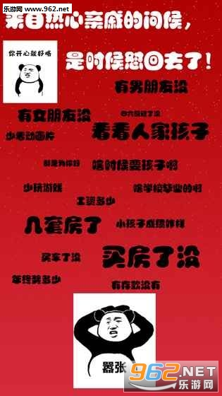 《斗图大战之亲戚拜年官方版》是一款非常魔性搞笑的表情包斗图游戏,春节即将来临,热心的亲戚们又送来了他们亲切的问候,工资多少啊,买房了吗,有女朋友了吗,年终奖有多少啊等等,对于这种表面亲戚,是时候回击回去了。