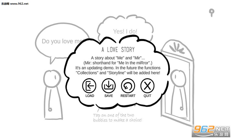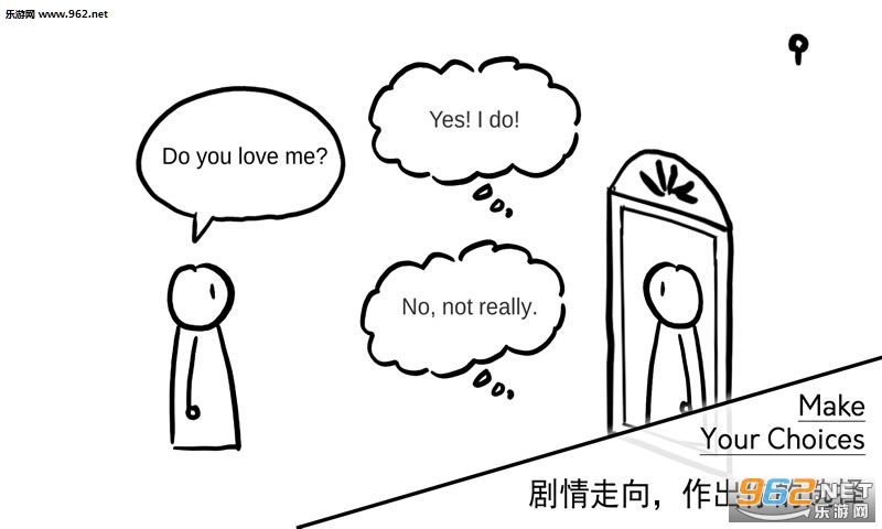 《一个爱的小故事A Love Story安卓版》是一款文字对话游戏,游戏的画面非常的简约,简单的手绘线条构成一个个黑白画面,游戏中你会问镜子你爱我吗,由此开始这个游戏,不同的选择对应着不同的结局,当然如果你一开始就选择爱的话就跟电视剧主角开场就死了一样,全剧终。