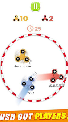 这个游戏真是简单而有趣。 它会自动旋转,当您按下按钮时,它会旋转超快,并沿一个方向直线推动其他玩家。