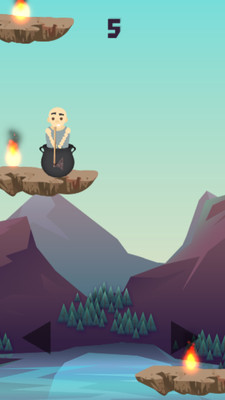 这是一个具有“惩罚”内容的登山攀岩类的游戏,说惩罚是因为游戏内没有存档的机制,操作不当或者失误都可能会导致玩家重头再来。而且游戏内的操作并非那么简单,虽然只需要简单的滑动就能控制,但是力道的和方向判定都是需要深思熟虑的。