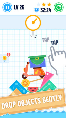 游戏中有太多的不规则物体,想要将所有东西堆栈得高就必须保持绝对的平衡。