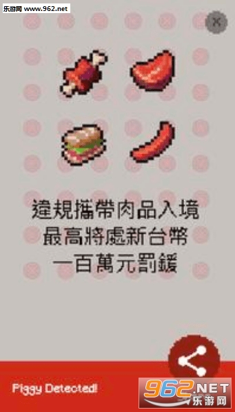 该游戏灵感来源于最近“非洲猪瘟”新闻,玩家将在游戏中扮演海关人员,检查旅客行李是否携带猪肉,找出违规人员并销毁猪肉。