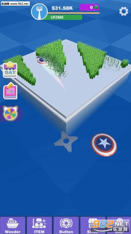 2、丰富的割草道具,忍者飞镖,美国队长的盾牌,各种有趣道具;