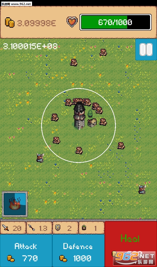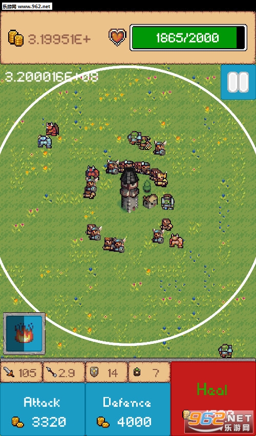 如果你们喜欢玩休闲放置点击塔防类型的2D卡通像素风格的游戏,那么这款闲置塔防还是比较不错的选择。游戏的画质比较简陋,玩法也非常简单易懂,基本手指点升级就好了,怪多了就一套天火教他们做人。温酒推荐6.1分。