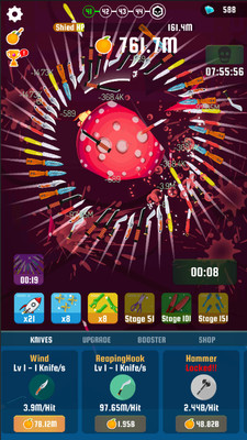 一款非常具挑战性的超级休闲游戏。游戏中,你可以升级你的刀具力量,以获得更大的打击。利用每次练级的奖励和特殊奖励来更快地削减水果。