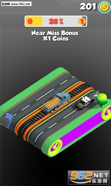 2、途中会出现很多的障碍物和车辆向你驶去,玩家需要躲避;