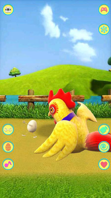 这款游戏的玩法类似于会说话的tom猫、不过这次的主角是一只鸡、小编个人感觉鸡设计不是很可爱、看起来很傻。不过里面的动作还是蛮多的、踢球、跳舞等等,都会让小孩子感到很开心,而且里面的学话也是惟妙惟肖,总的来说还是不错的。