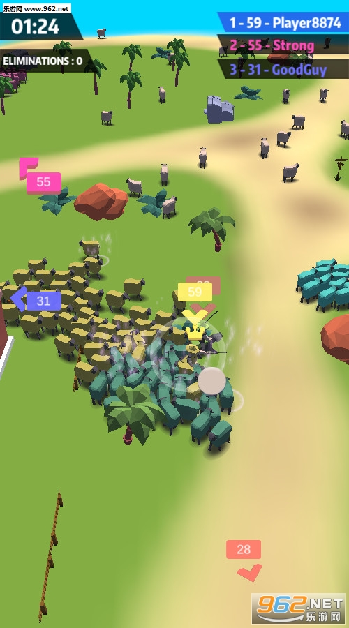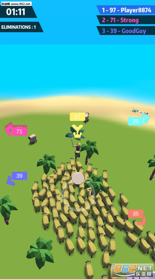 《拥挤的牧场安卓版》小编温酒认为是一款3D低模像素卡通风格,以放养人抢羊为题材的休闲io对战类游戏。在游戏中,玩家将扮演一个牧羊人,你可以将白色的羊变成自己颜色的羊,然后去吞噬掉其他颜色的羊,最后变为牧羊王。
