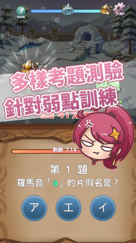 借此训练日语能力,且三位英雄分别掌握假名,读音,听力三种测验,