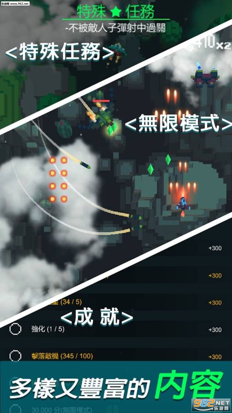 游戏中玩家将面对一大波横空袭来的战机,面对枪林弹雨,你只有不断射击对方才能保证自己的安全,复古的像素风格,现代的光影特效和音效,非常优秀!