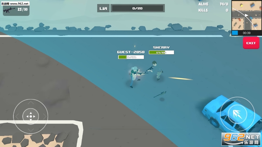 一款像素风格的射击游戏,玩法就是大家喜欢的吃鸡玩法,不过时间更短,非常适合玩家空闲时间玩几局,操作简单易上手,武器丰富多样。