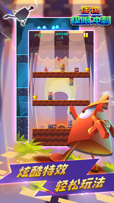 控制可爱的小怪物在极限的时间内使出各种帅气的跳跃动作快速越过各种障碍物到达目的地。
