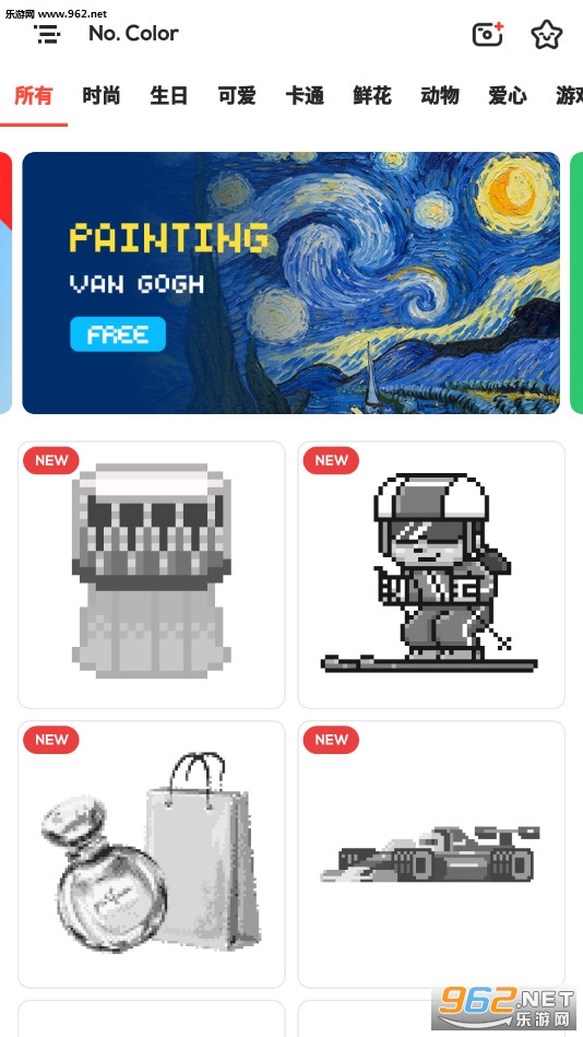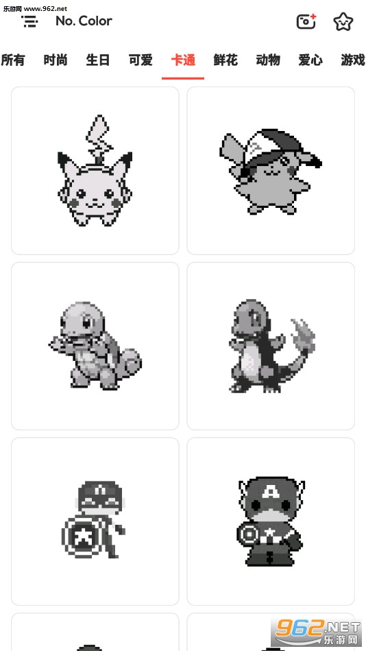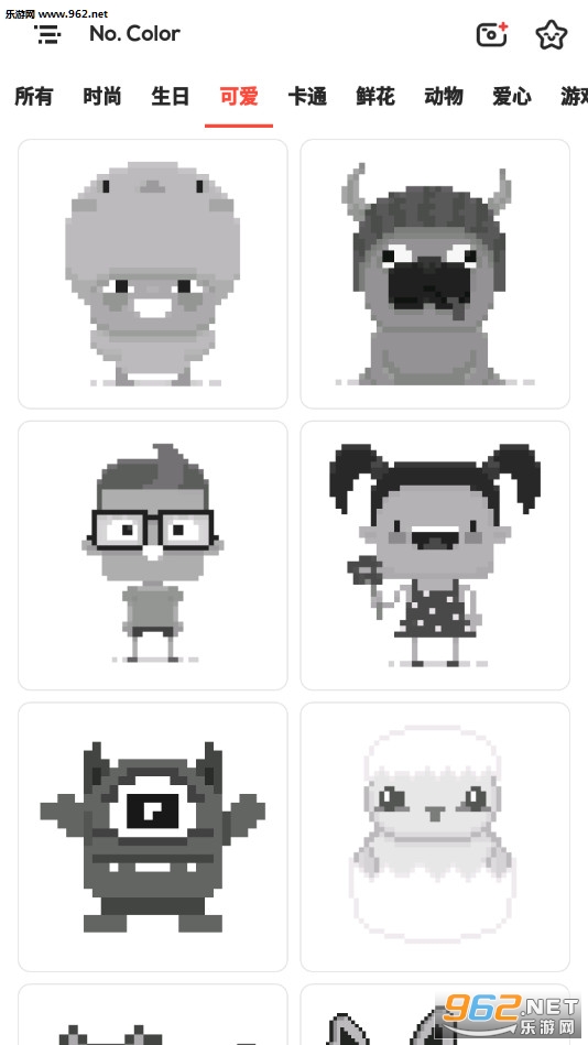 《数字着色游戏》(No.Color)是一款像素风格的涂色绘图游戏,游戏中玩家可以选择动物、卡通、鲜花等不同的类型进行体验,有着众多的图案可以挑战,玩家可以选择多种不同的颜色,在像素的图案上着色,凭着自己的想象即可,制作一张精美的图片。