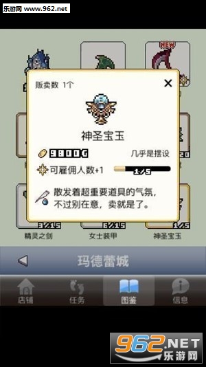 《王国道具店》是一款像素风格的模拟经营手游,尝试在这个奇幻的王国里开一家新的道具店,为前来光顾的勇者们提供各种强力的装备。招募佣兵去迷宫里冒险,不断获取新的商品,赚更多的钱!喜欢的小伙伴们赶紧来下载吧!
