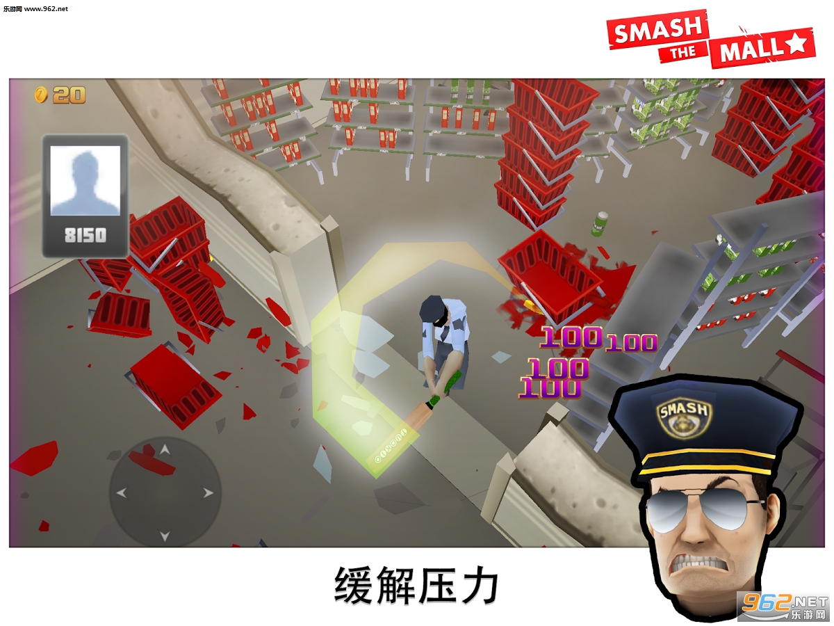 《压力修复 Smash the Mall》是一款暴力宣泄的3D动作游戏。游戏画面3D,显示效果一般。游戏操作简单,左键是虚拟摇杆,右键则为攻击键。游戏中,玩家将化作超市店员,小偷,厨师或者其他人,在超市里面打杂。这样想想,跟心理不高兴的时候跑去超市捏方便面是一个道理吧。