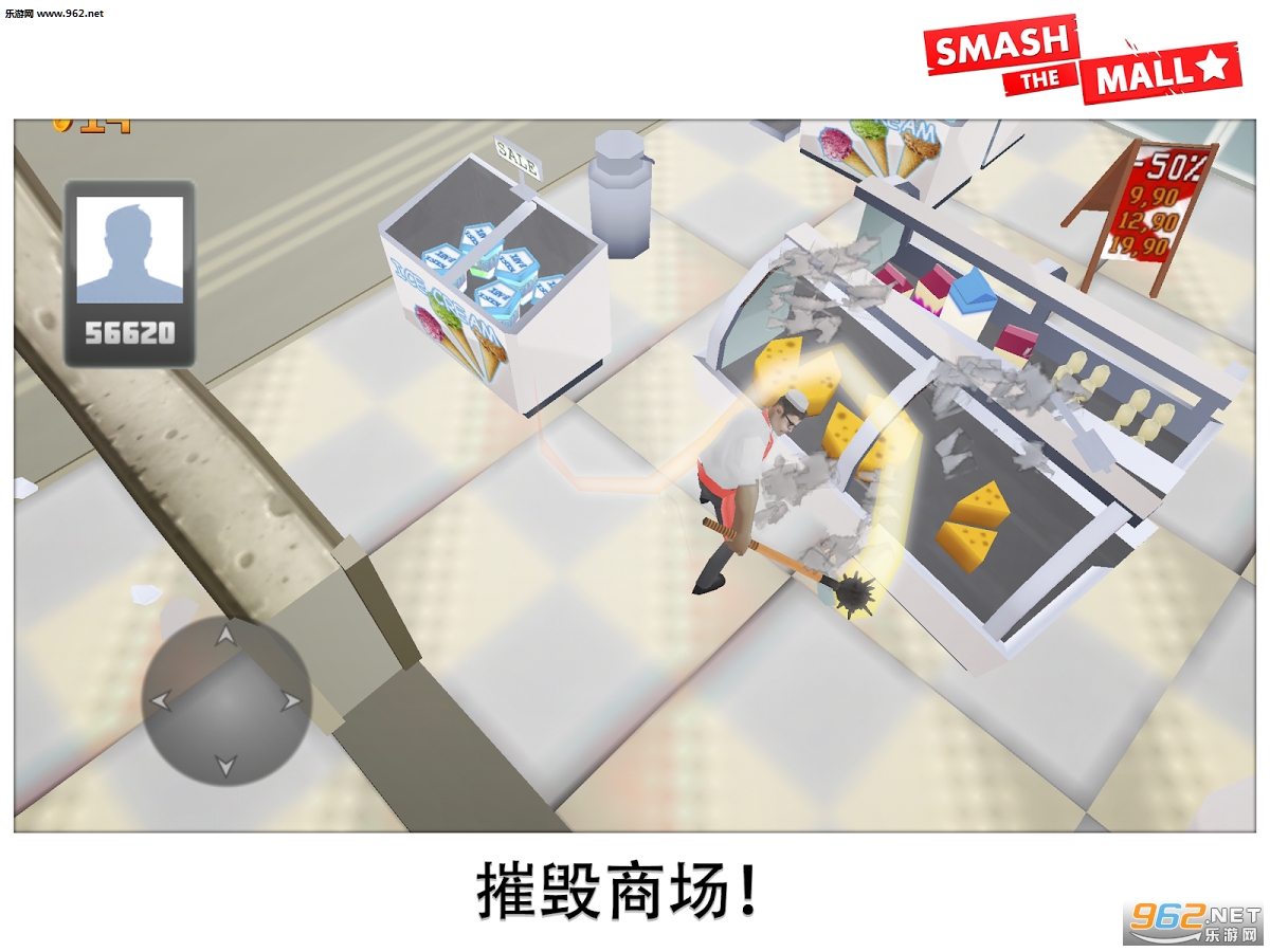 《Smash the Mall压力修复游戏》是一款画风简约休闲发泄类游戏,玩法类似《粉碎学校》,只不过在这里你要粉碎的是超市,你可以在超市中自由地行走,移动,利用手中的棒子,木棍都能道具,尽情的打砸超市,还能升级解锁更多的场景道具,赶集下载吧!