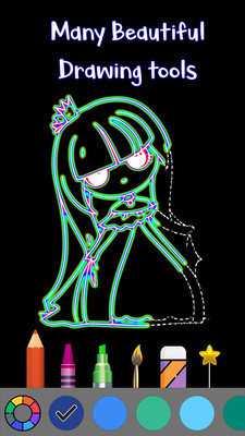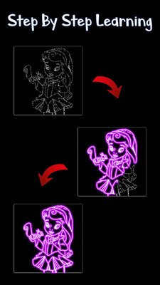 《绘制夜光公主官方版》是一款绘图装扮模拟类手机游戏,在游戏中玩家要为公主绘图,纯黑的背景上,玩家控制能画出荧光闪闪的痕迹的画笔,有一种别样的意境美,就算没有画画经验的玩家也可以一步步的跟着学习,喜欢的玩家快来下载吧。