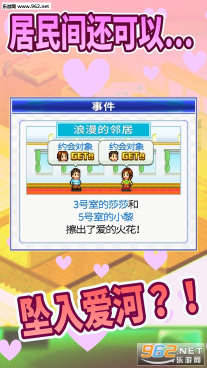《幸福公寓物语游戏》是一款像素风格的模拟经营游戏,游戏中你可以建造一座属于你的房子,装饰它,然后去寻找你的另一半,与ta坠入爱河,步入婚姻的殿堂,一起幸福的生活在你们的小屋中,养育你们的下一代。