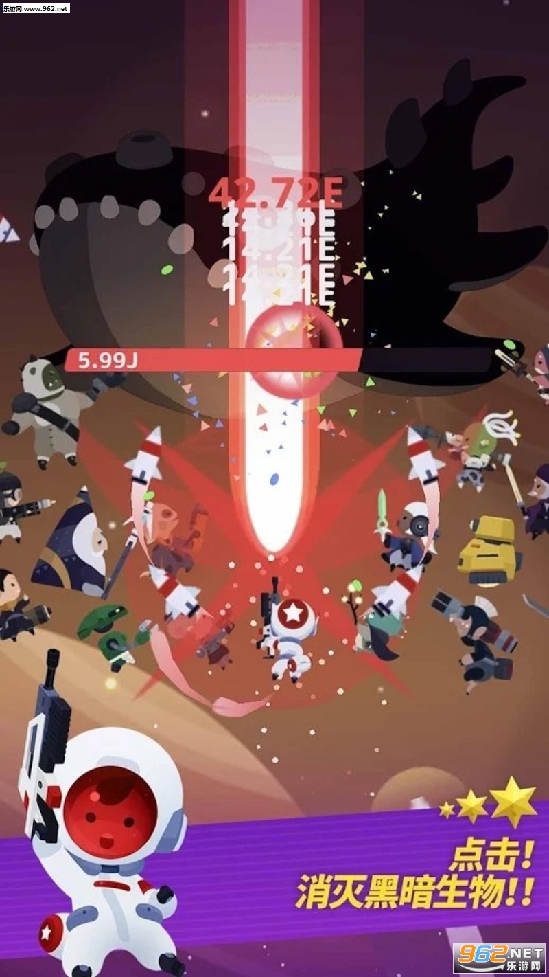 一款卡通风格的点击类休闲冒险手游,玩家将探索未知的宇宙,不断的升级飞船,招募不同的成员,凭借武器和技能来打败所外星怪兽,维护宇宙的和平,喜欢的小伙们快来下载吧!