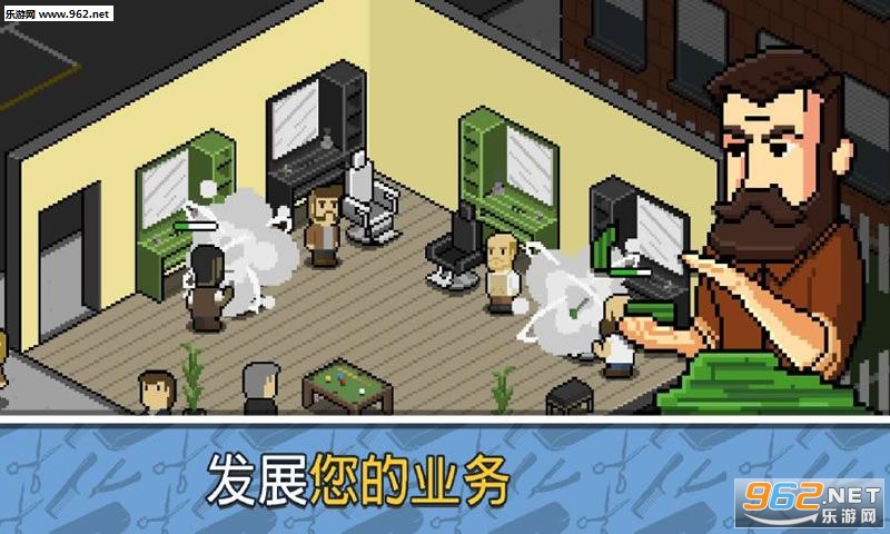 游戏画风采用了复古的像素风格,玩家将站在上帝视角,看到你的理发店的全貌,你需要运用一定的策略经营你的理发店~