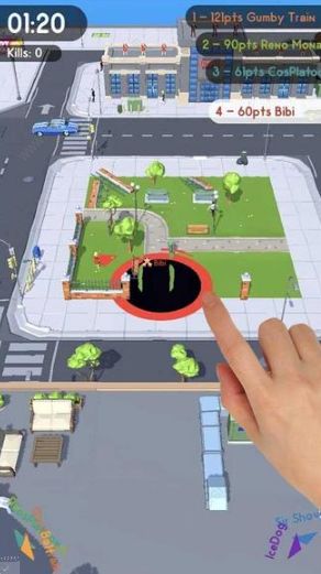 《Hole City Wars安卓版》小编温酒认为是一款3D卡通风格,以黑洞吞噬为题材的休闲对战io类游戏。在游戏中,玩家将控制一个黑洞,你可以移动它让它去吞噬各种各样的东西,只要体积比它小就可以了,吸收之后会变大。
