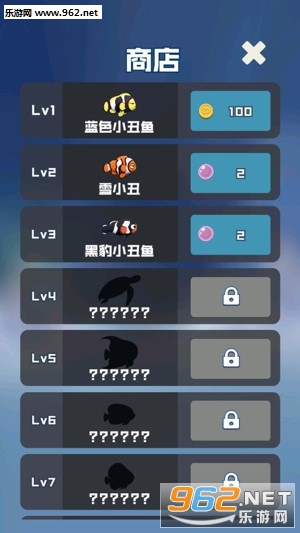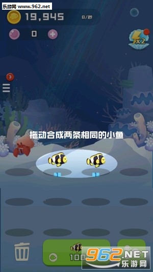 3、从一个水族箱开始不断点击合成,合成的鱼儿种类越高级,获得的金币奖励就越多。